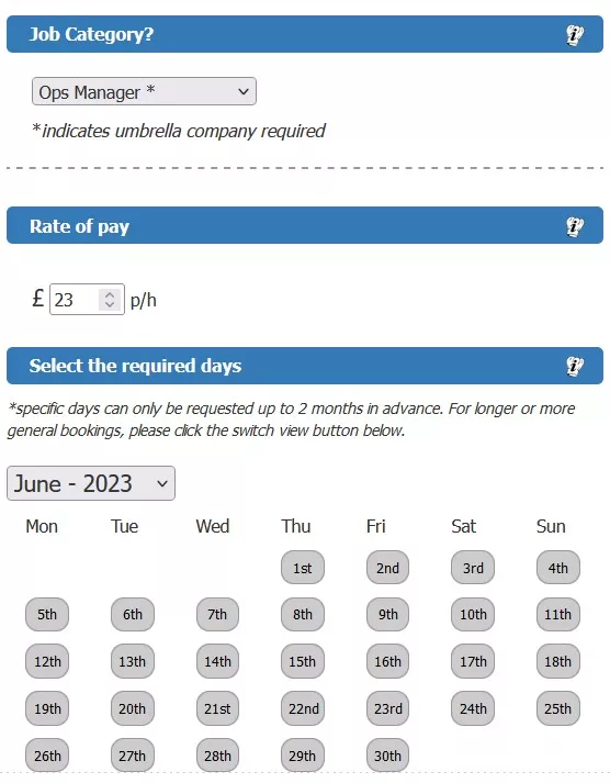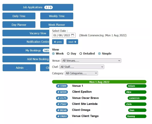 Agency, Client and Worker all have access to the booking system. It could not be easier: Agency or Client set-up the first booking and the Worker can replicate as and when needed.